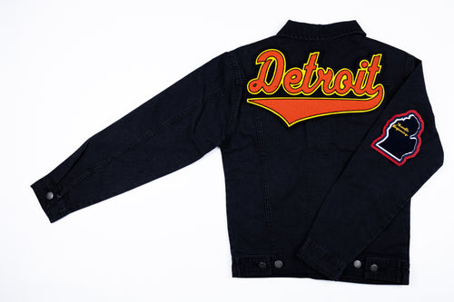 Burnt Orange & Yellow “Detriot" Black Denim Jacket